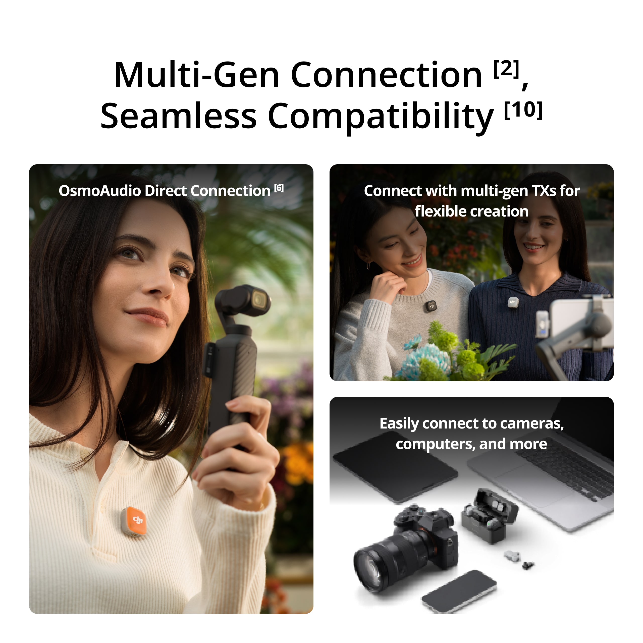 Ngoài ra, sản phẩm hỗ trợ hệ sinh thái OsmoAudio, cho phép transmitter kết nối Bluetooth trực tiếp (không cần receiver) với: